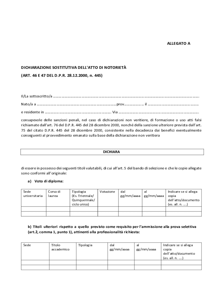 Il Natoa Form è un documento fondamentale utilizzato in diverse applicazioni professionali, soprattutto in ambito medico e di ricerca. Serve a raccogliere e standardizzare informazioni necessarie per vari tipi di pratiche, dall'ammissione a corsi di specializzazione alla raccolta di dati per studi clinici. In genere, il suo scopo principale è garantire che tutte le informazioni rilevanti siano associate a un singolo soggetto, facilitando così analisi future e migliorando l'efficacia della comunicazione tra vari stakeholder.