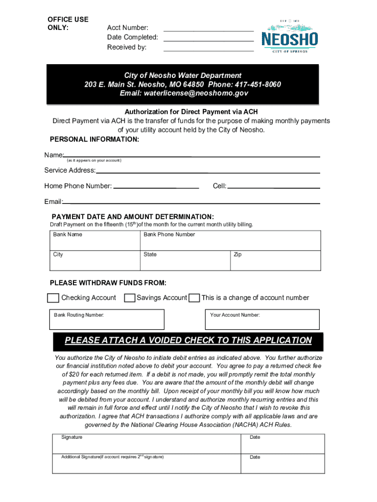 Get Started with the City of Neosho ACH Payment Authorization Today!