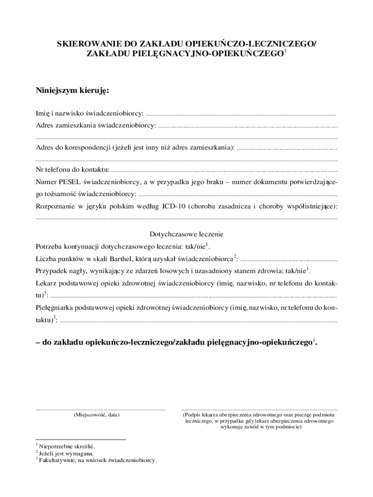 Any patient who requires a referral to a healthcare or nursing facility in Poland is eligible to use the Polish Healthcare Facility Referral Form. Both the patient and healthcare provider must sign it.