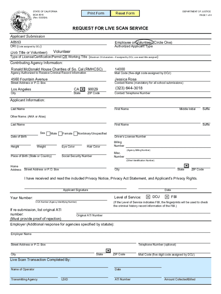 There are several methods available for submitting the California Live Scan Service Request Form: