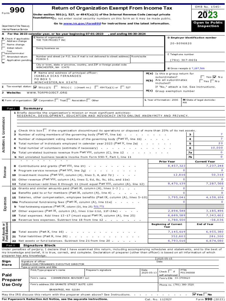 The Form 990 2023 is a tax document used by tax-exempt organizations in the United States to report financial information to the IRS.