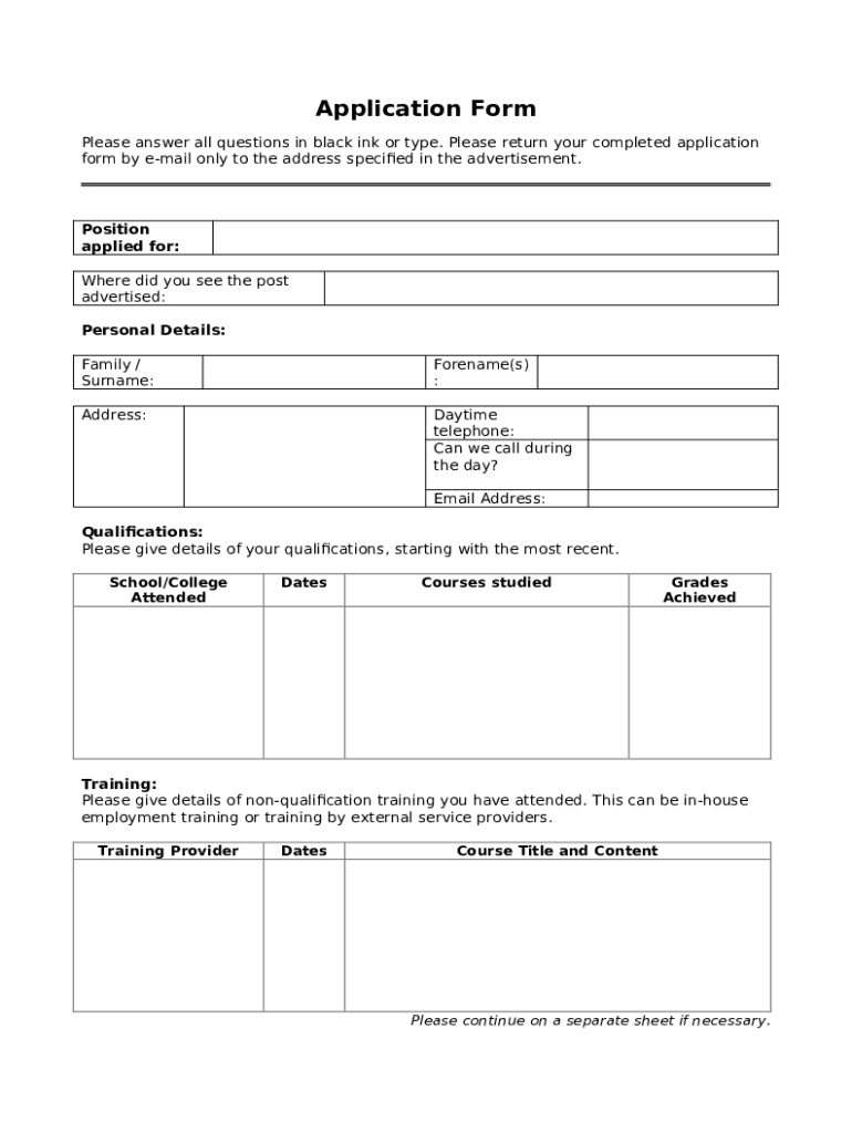 The Job Application Form includes several key components that are essential for efficient processing. Key sections typically consist of: