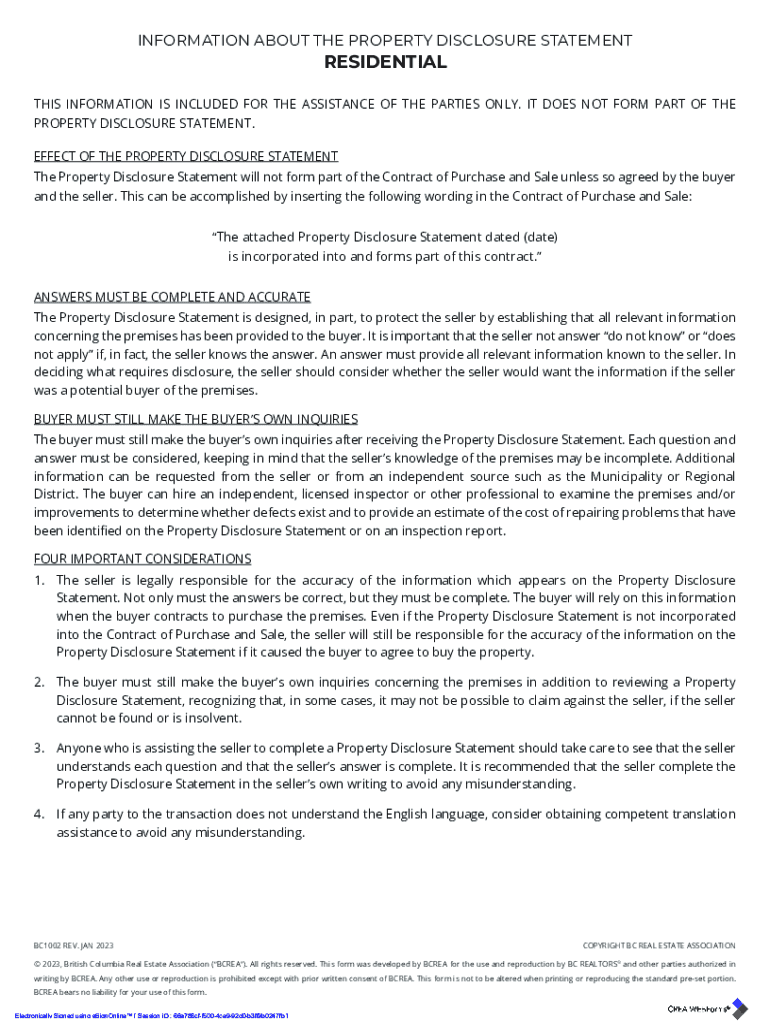 The Property Disclosure Statement is a real estate form used by sellers in British Columbia, Canada, to disclose vital information about residential properties to potential buyers.