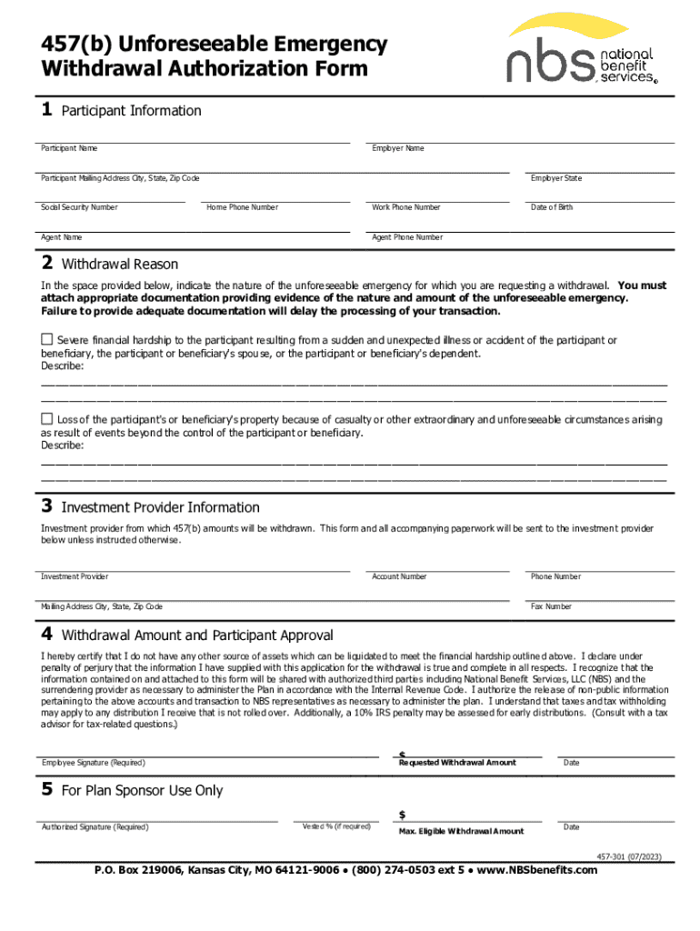 Key Features of the 457(b) Unforeseeable Emergency Withdrawal Authorization Form