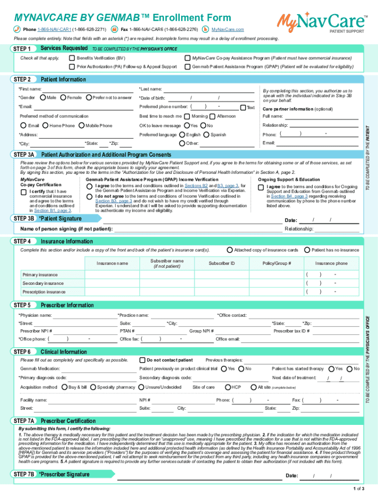 How to fill out the mynavcare by genmab enrollment