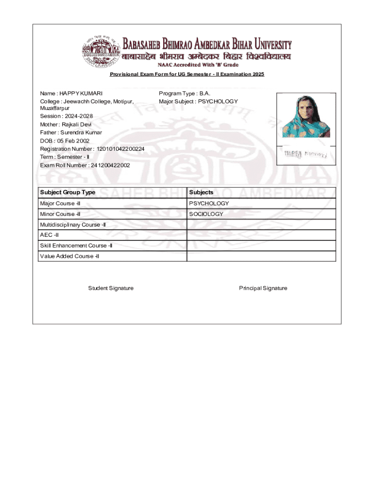 Get the free Provisional Exam Form for UG Semester II Examination 2025