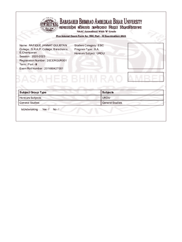 The Provisional Exam Form is essential for various categories of students aiming to sit for the Part III exams. Specifically, students from S.R.A.P. College and those within the E. Champaran region must ensure they complete this form to be eligible.