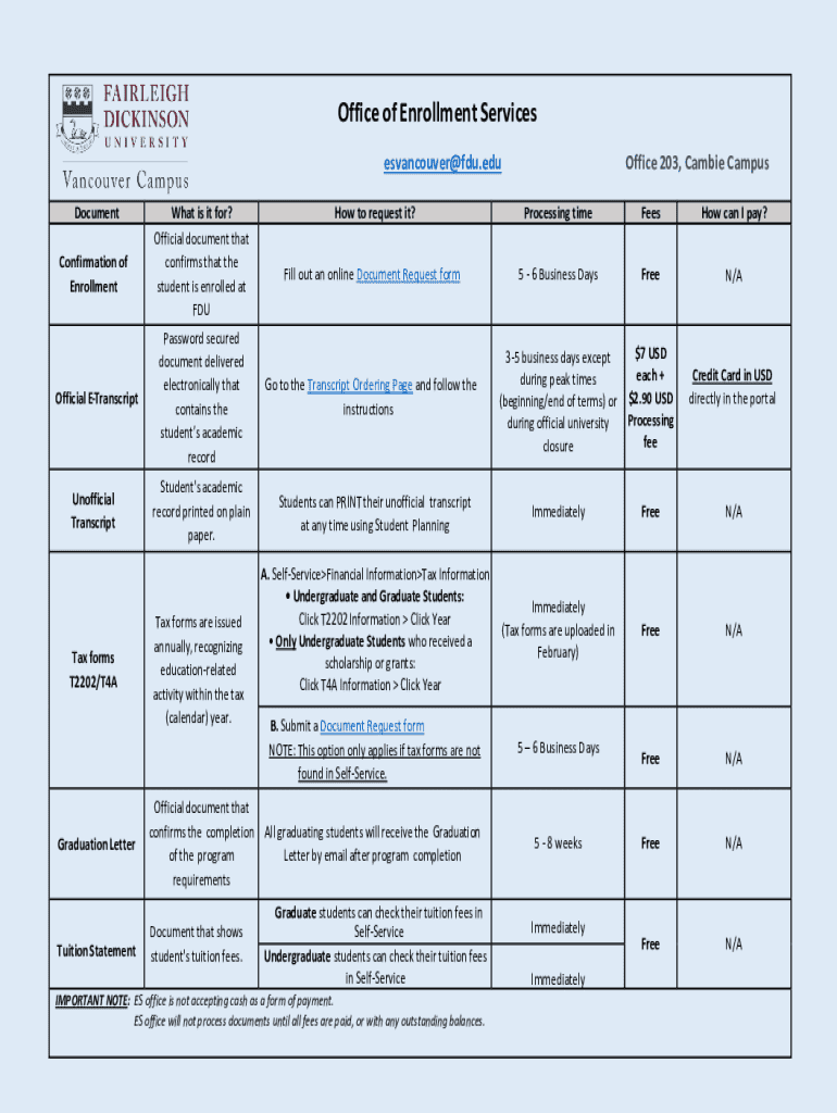 Students have various options for submitting the FDU Transcript Request Form. Official transcripts can be submitted online, while print options may be available for unofficial requests. The fee structure for acquiring official transcripts is outlined as follows: