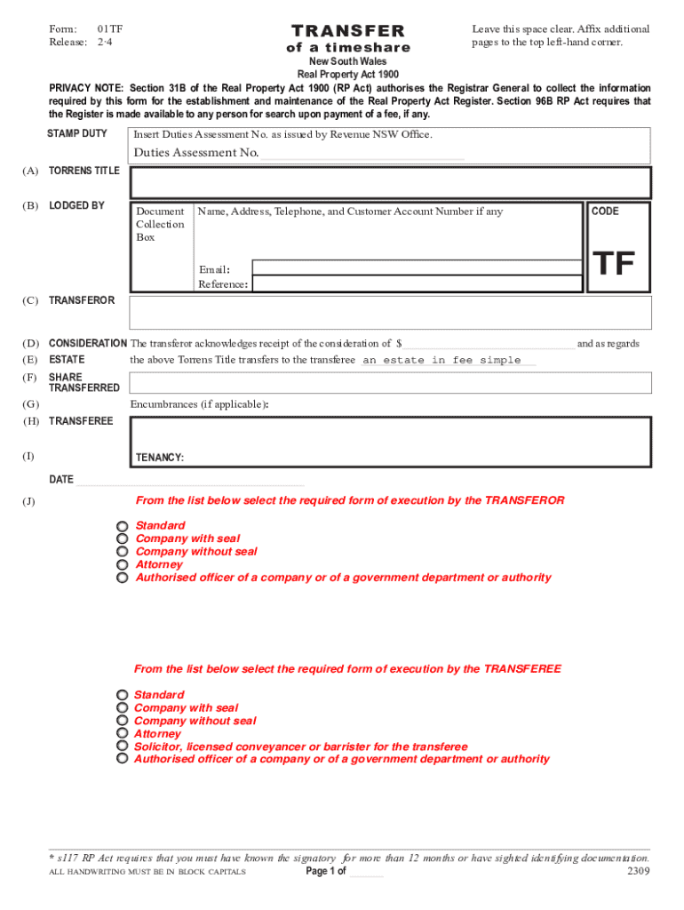 Get the free NSW Transfer of Torrens Title Form