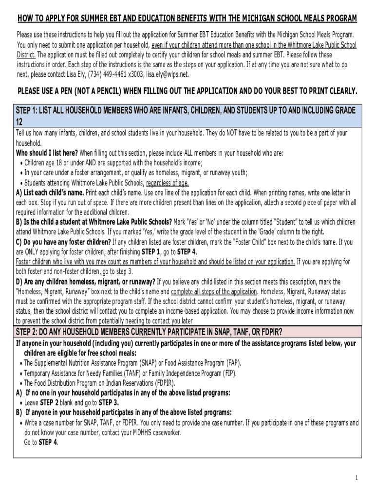 Who Needs the Michigan Summer EBT Education Benefits Application?