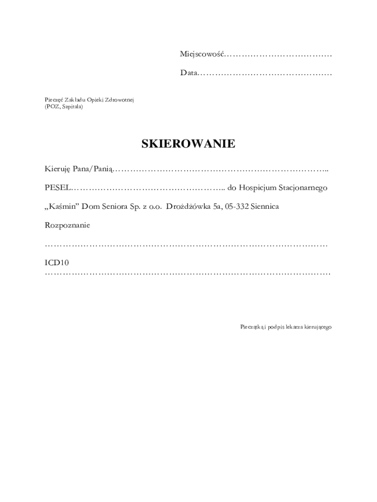 The form can be used by patients and doctors in Poland. Patients needing hospice care and doctors referring patients will find this form essential for the referral process.