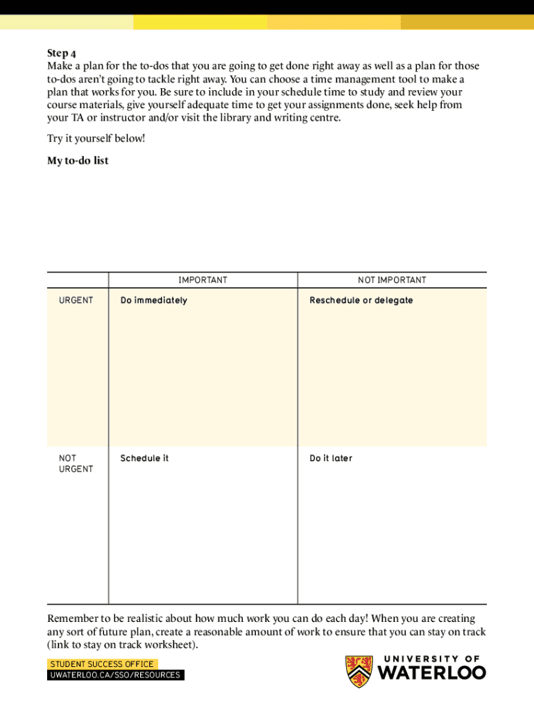 Periodic reassessment of priorities throughout the semester is also encouraged, allowing students to adapt their strategies as needed.