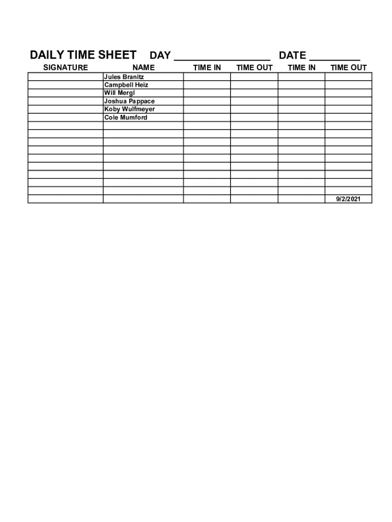 Utilizing an employee time sheet pdf or a daily time sheet template can be beneficial in ensuring precise records.