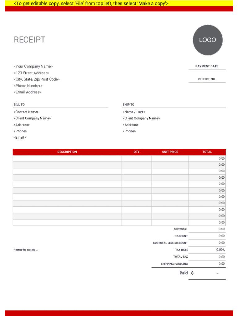 Get the free Receipt Template
