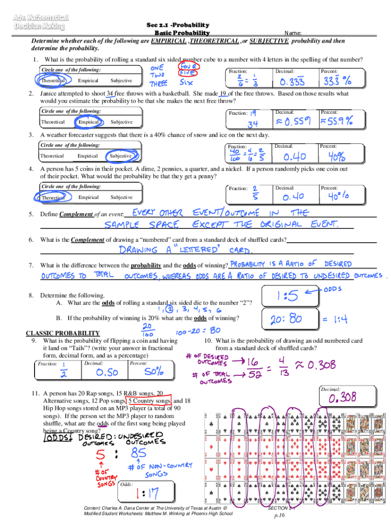 4.Before filling out the worksheet, gather any necessary materials such as textbooks or notes on probability concepts. Make sure you understand empirical, theoretical, and subjective probabilities, among others.