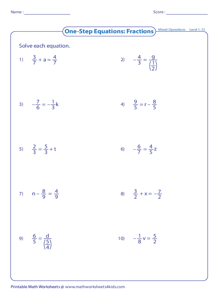 The One-Step Equations Worksheet is an essential educational tool designed to aid students in understanding and solving simple equations. This worksheet encompasses a range of equation types, including those that involve fractions and mixed operations.