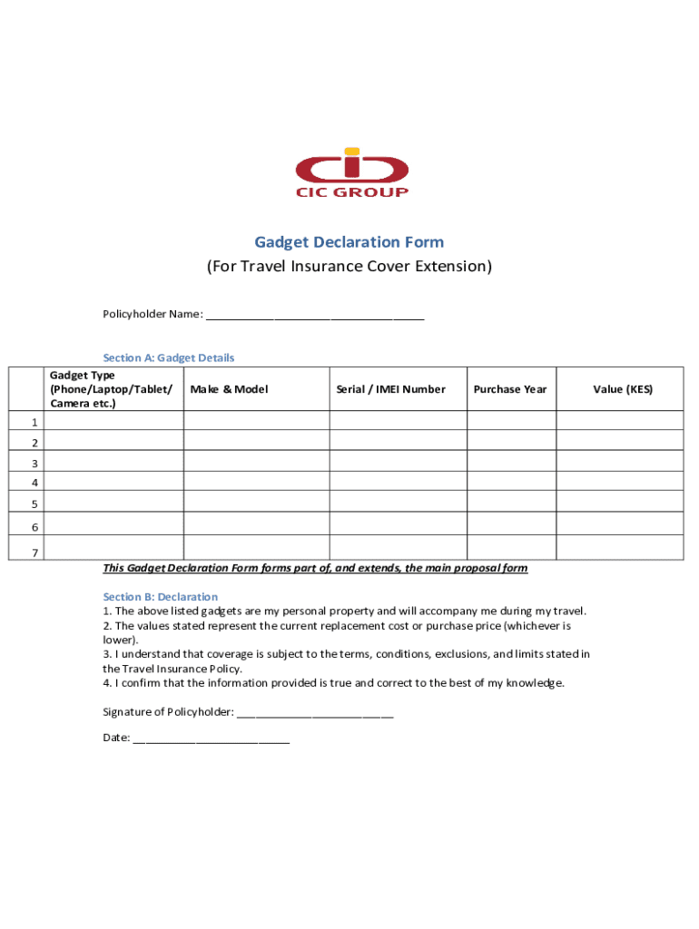 The Gadget Declaration Form is primarily intended for policyholders who want to ensure their personal gadgets are adequately insured. It becomes necessary in various scenarios, especially when traveling or when potential gadget coverage is relevant.
