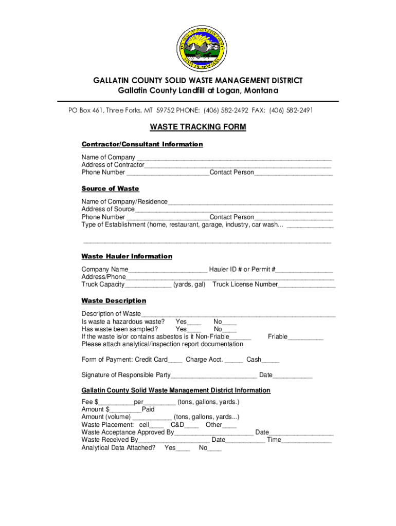 Get the free Gallatin County Waste Tracking Form