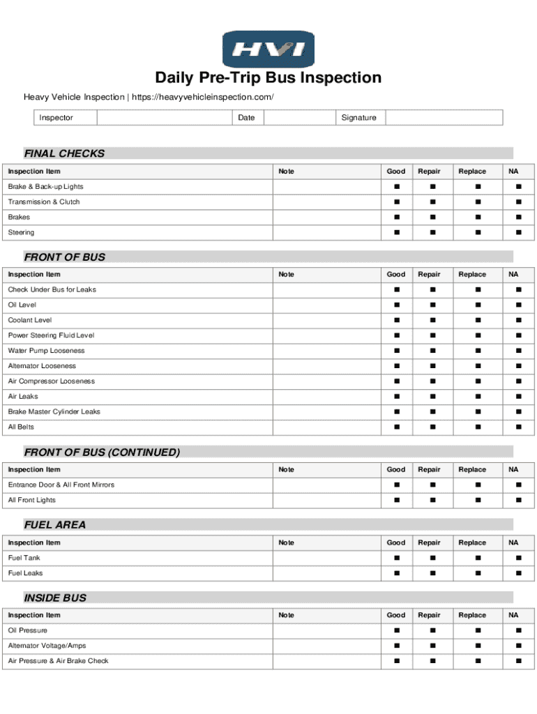 Key Features of the Daily Pre-Trip Bus Inspection Form
