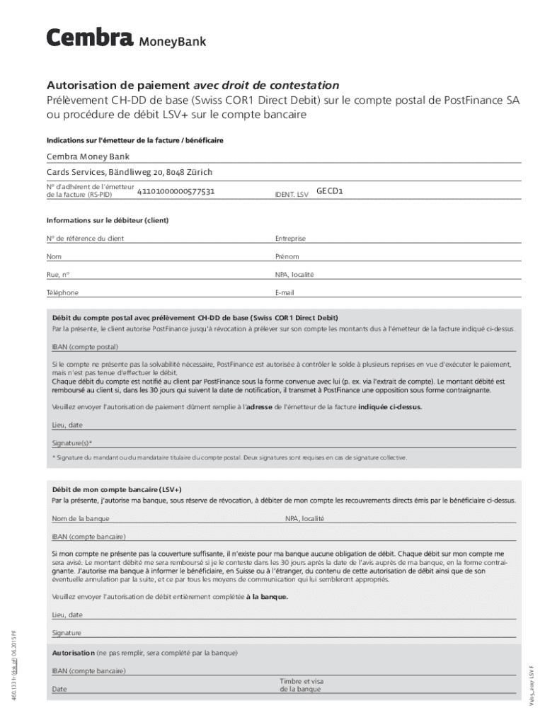 Tout client disposant d'un compte bancaire ou postal en Suisse peut remplir le formulaire pour autoriser les débits directs.