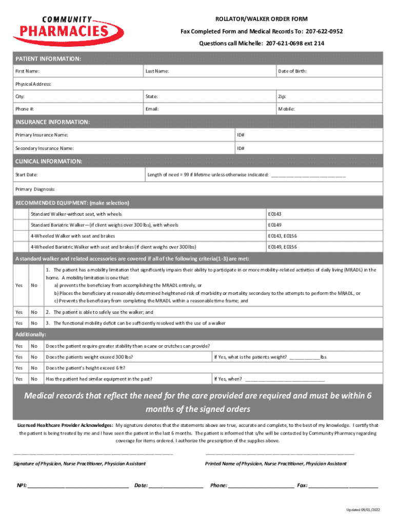 Get the free Rollator/Walker Order Form
