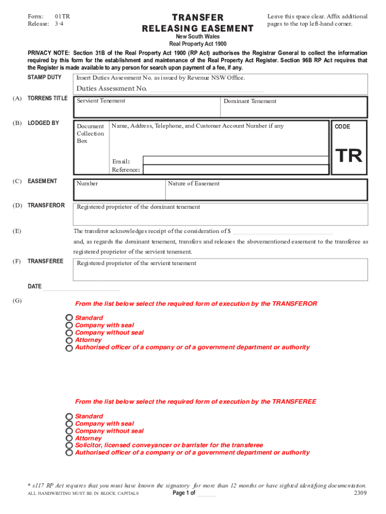 How to Fill Out the NSW Transfer Release Easement Form Online