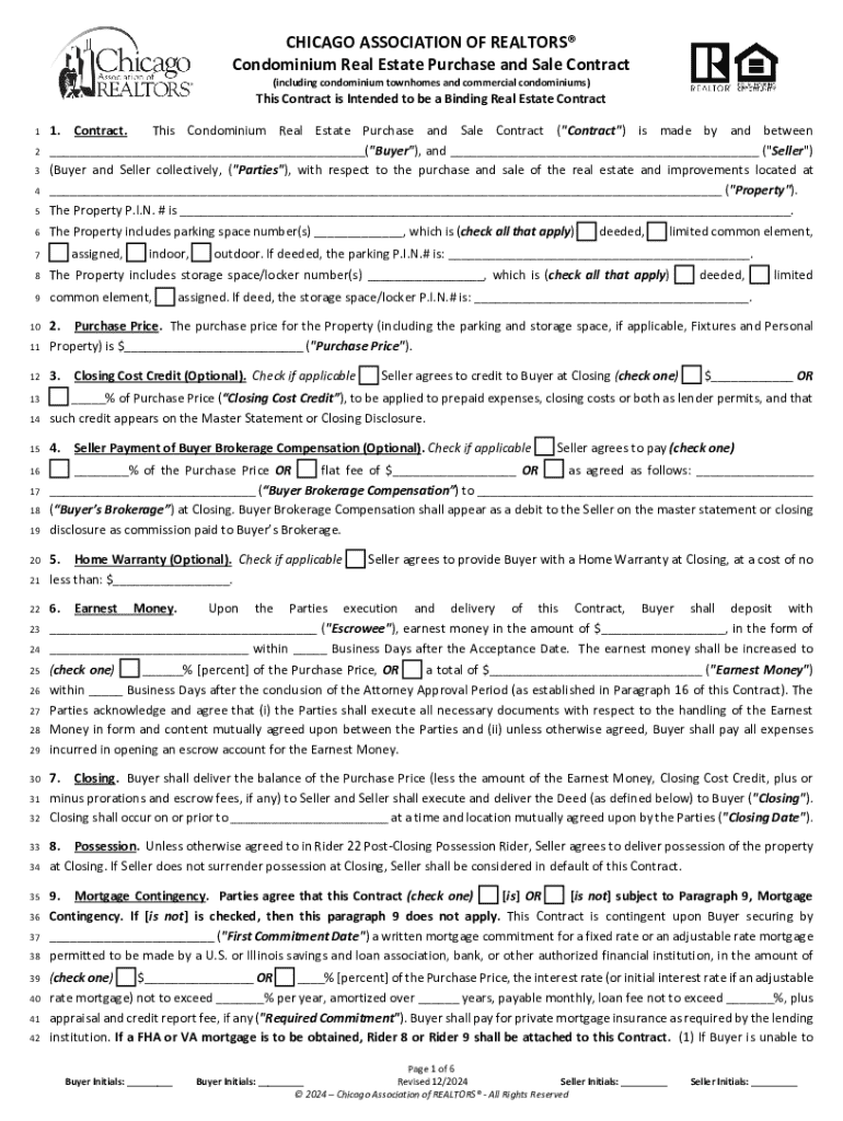 How to Fill Out the Chicago Condominium Purchase Contract Online