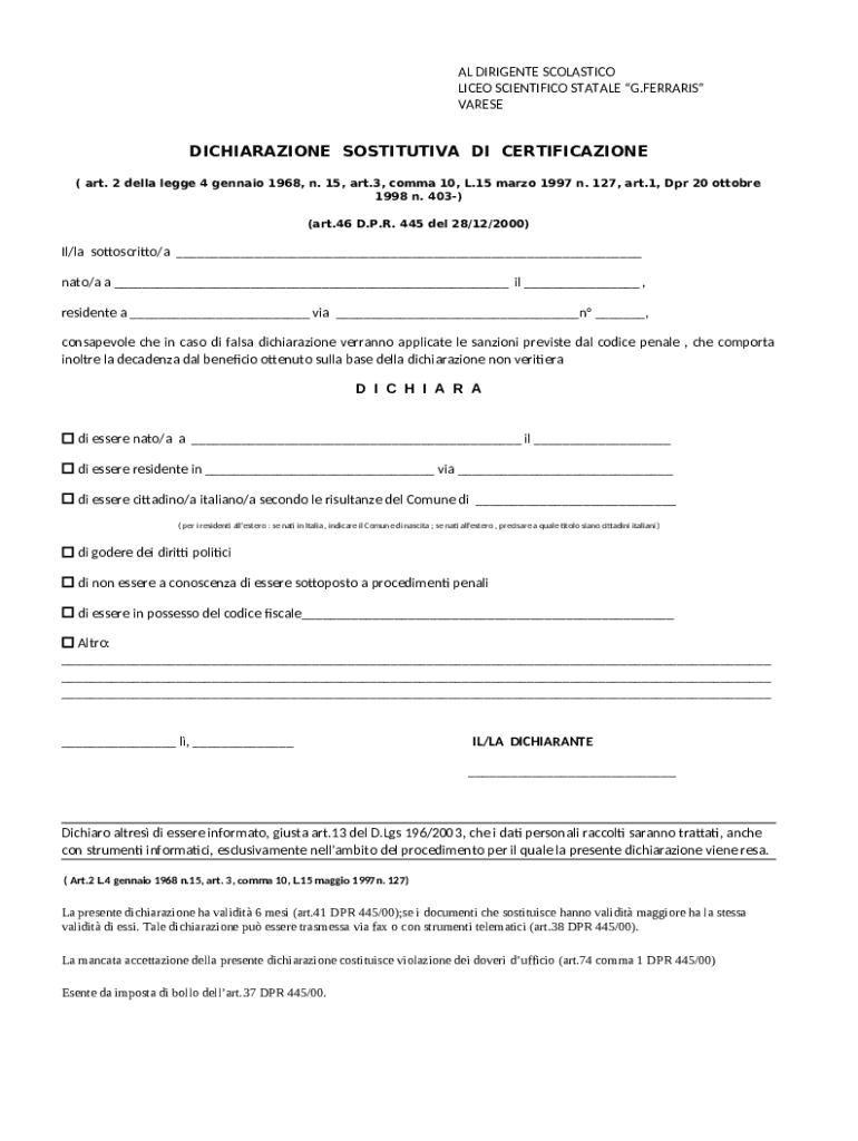 Ottieni il gratuito Italian Self-Certification Form