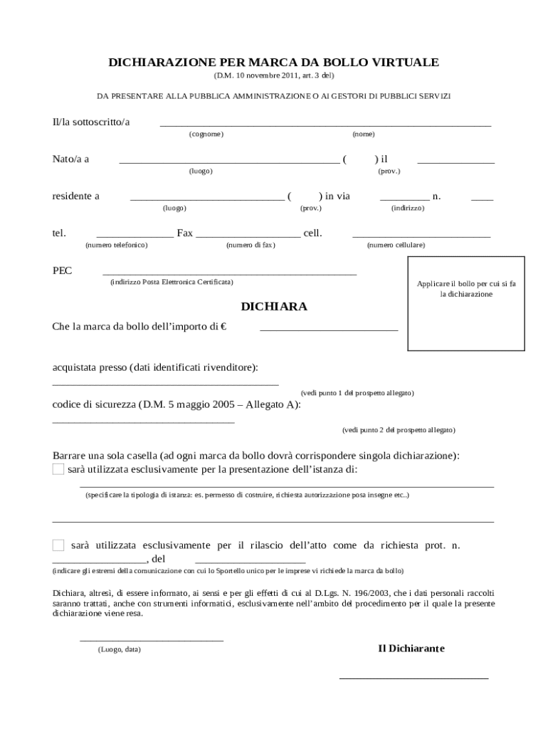 Ottieni il gratuito Italian Virtual Stamp Declaration Form