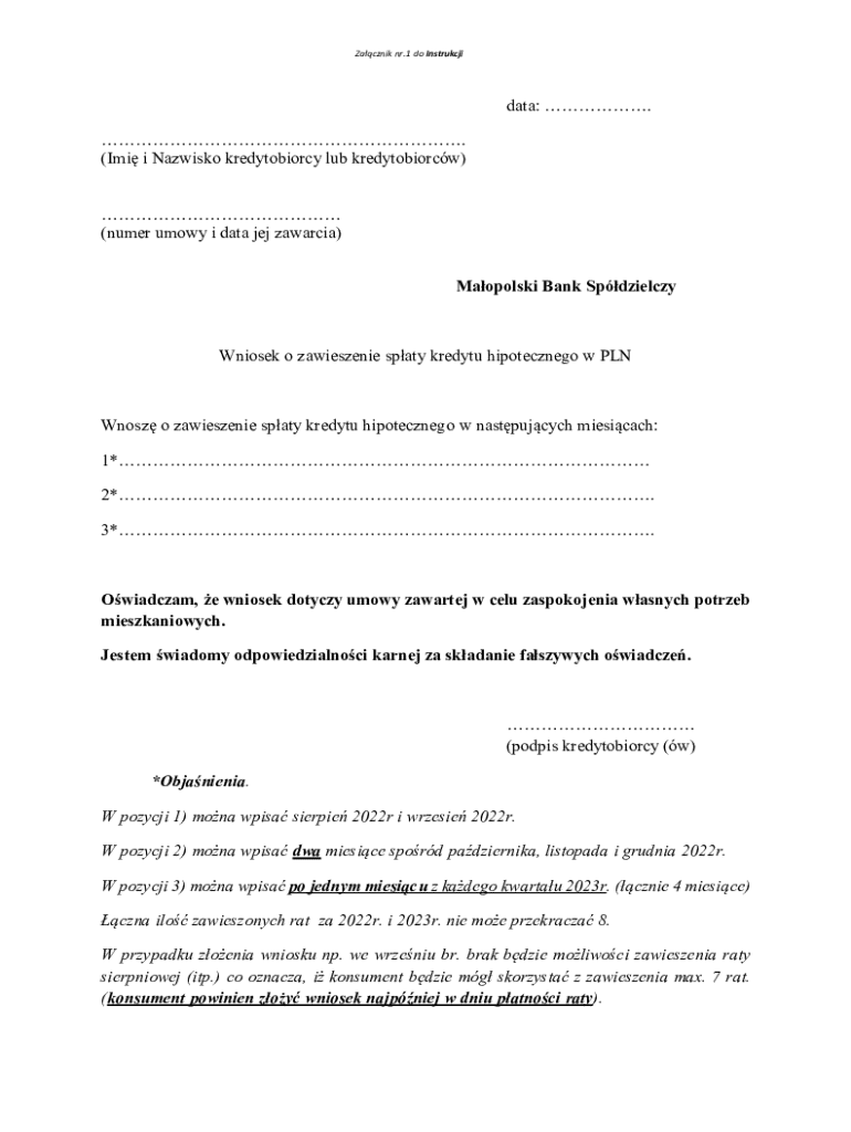 Who Needs the Małopolski Bank Spółdzielczy Mortgage Payment Suspension Request?