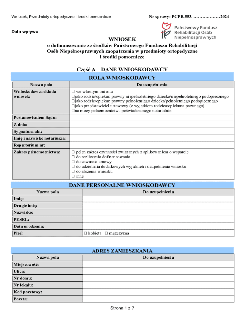 By filling out this application, applicants can secure essential aids that can greatly enhance their quality of life and independence. Designed specifically for the Polish context, this form ensures that individuals seeking support have a streamlined process for obtaining financial backing.
