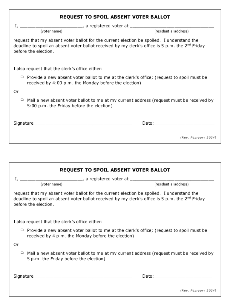 Submitting the request to spoil your absent voter ballot requires attention to timing and method. Voters must be aware of the acceptable time frames for submitting the spoil form, typically established relative to the election date.