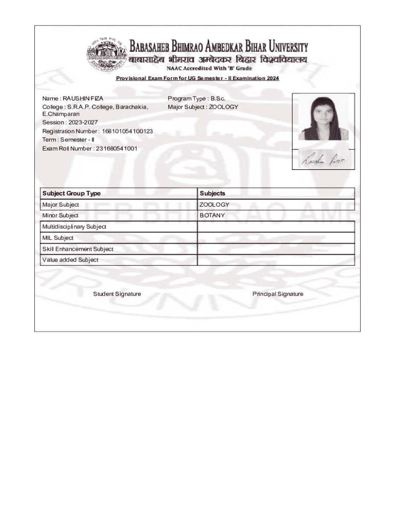 Undergraduate students enrolled in the UG Semester II at S.R.A.P. College, Barachakia, E.Champaran are eligible to fill out this form.
