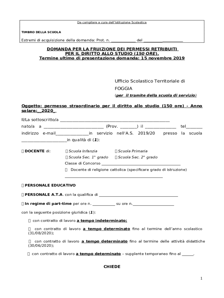 Che cos'è il modulo di domanda permessi retribuiti per il diritto allo studio