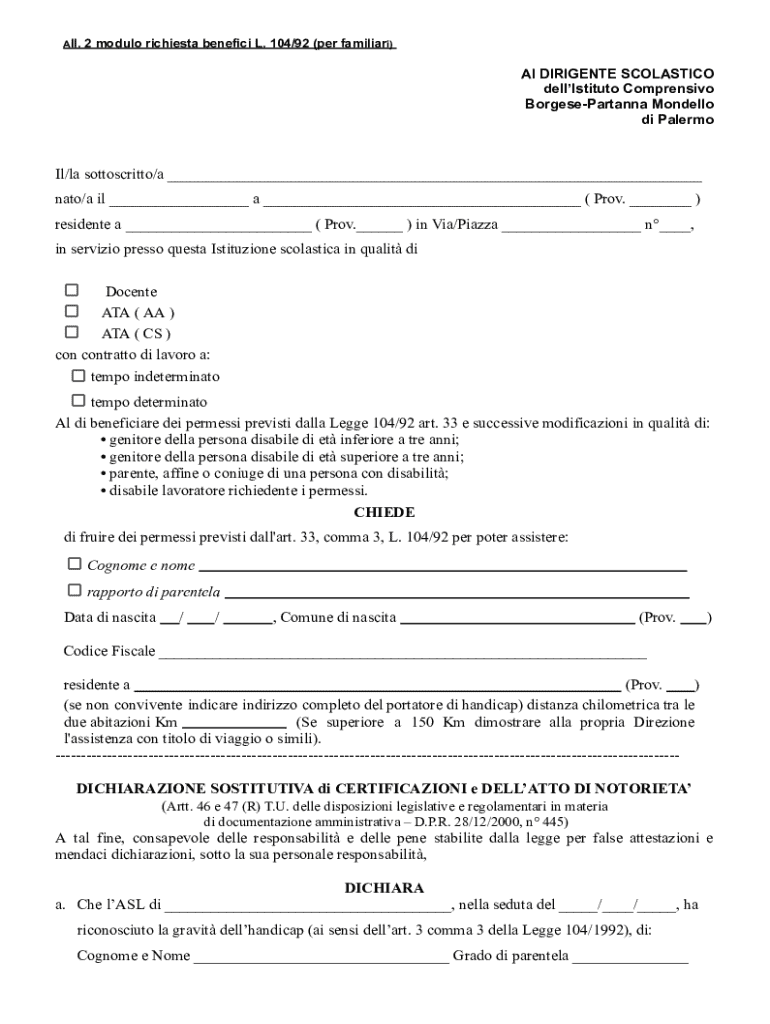 Come compilare il modulo di richiesta permessi L. 104/92 online