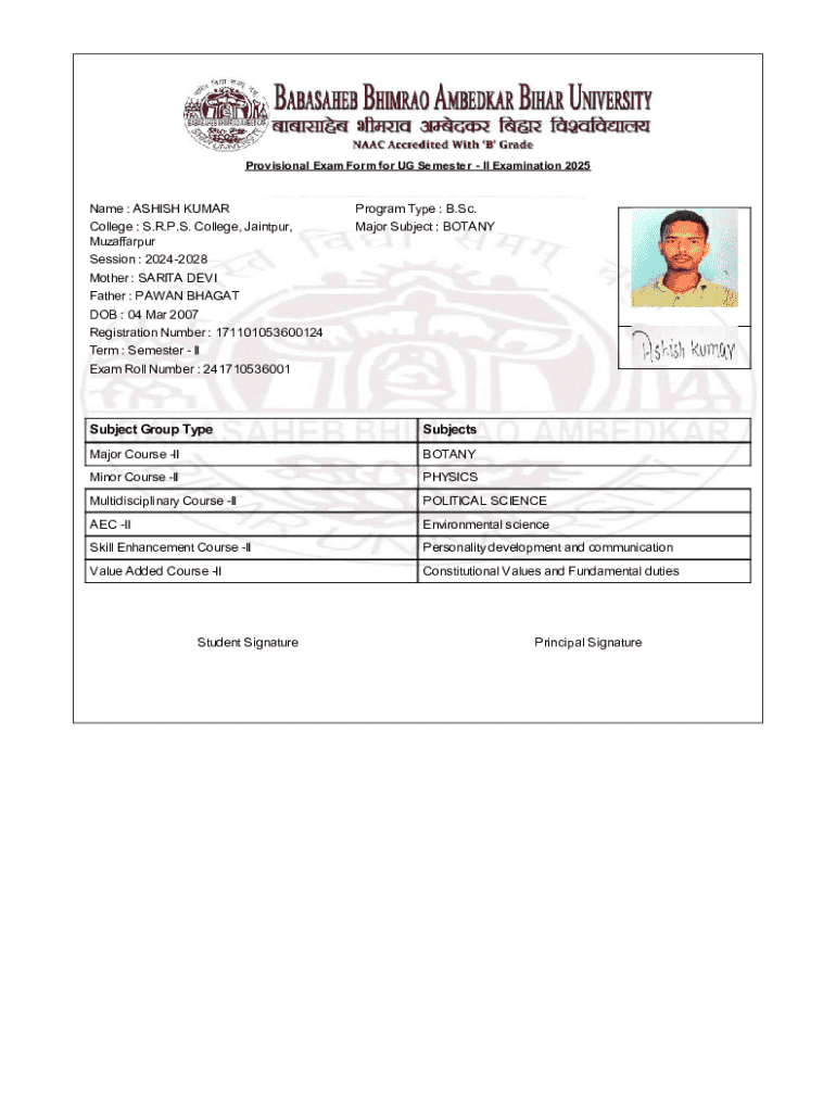 Get the free Provisional Exam Form for UG Semester II
