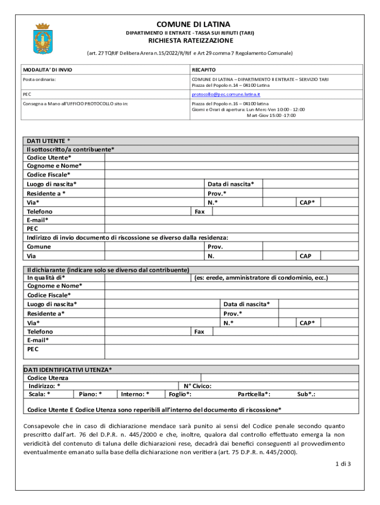 Ottieni il gratuito TARI Waste Tax Rateization Request