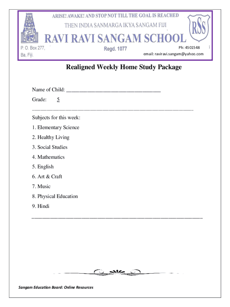 The Weekly Home Study Package serves as a vital educational resource for grade 5 students. This document includes various subjects such as Elementary Science, Healthy Living, and Mathematics. Its primary function is to facilitate weekly assignments and study tasks, guiding students through their curriculum effectively. By incorporating structured study tasks, the package aims to enhance the learning experience for young learners.