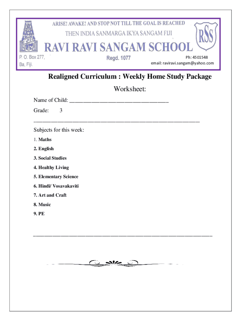 The Weekly Home Study Package is an educational form template designed to facilitate structured learning for students. Its primary purpose is to serve as a comprehensive educational tool that outlines subjects, learning outcomes, and weekly activities.