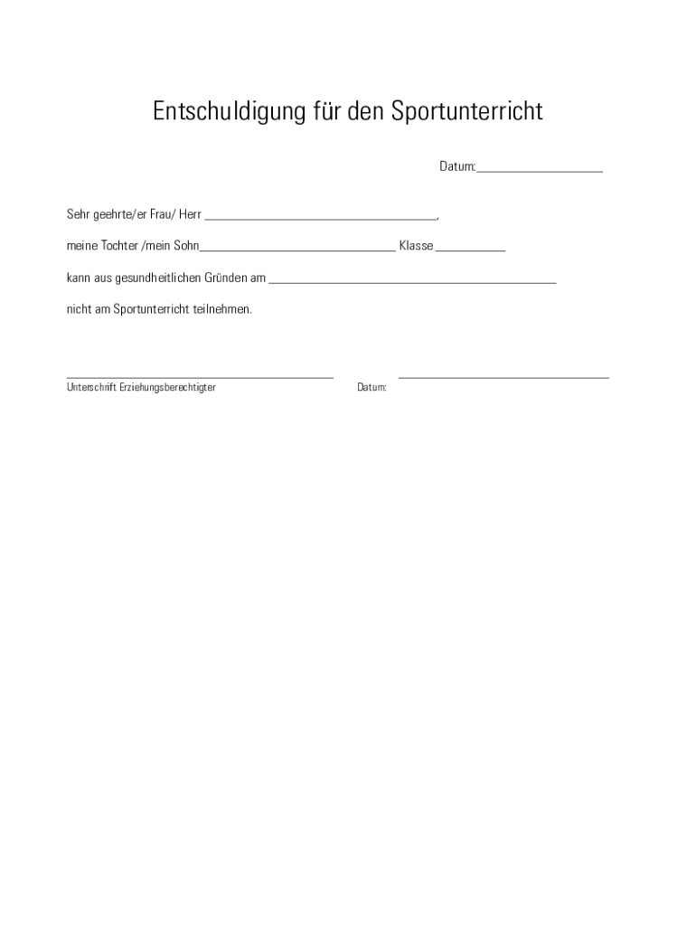 So füllen Sie das Formular entschuldigung fr den sportunterricht aus