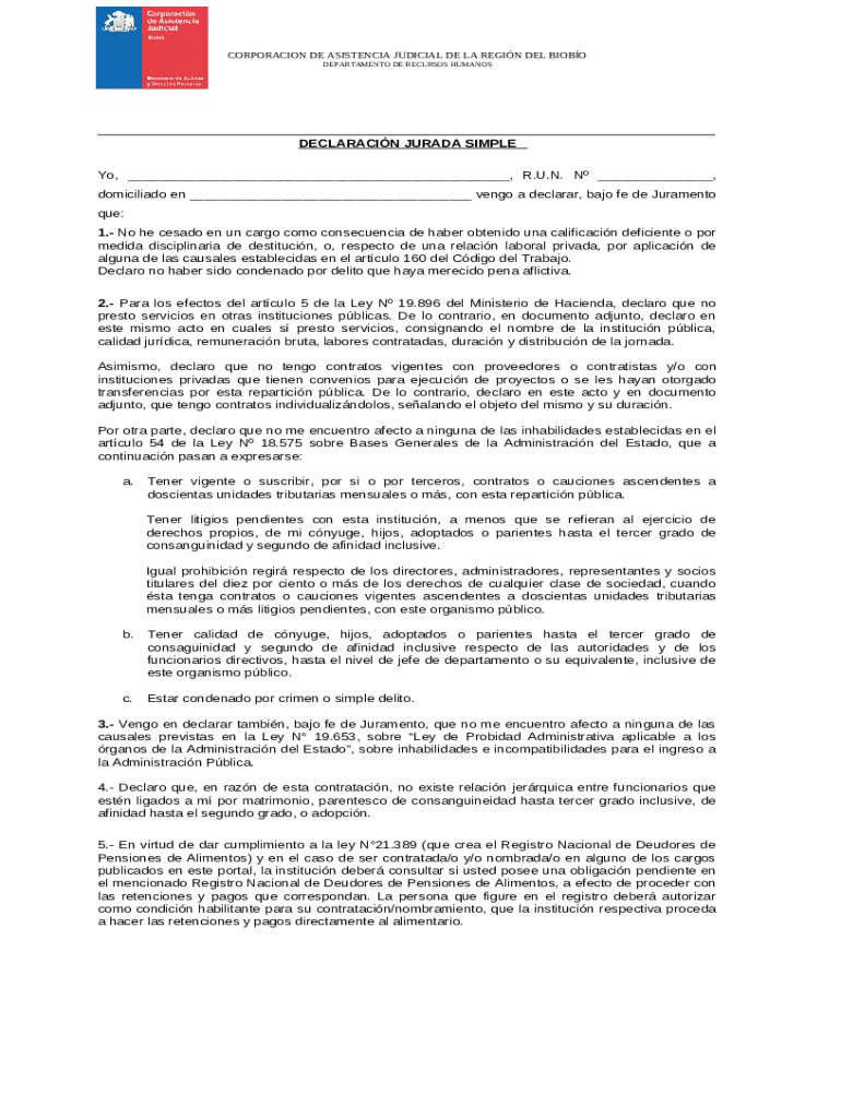 The necessity of the Chilean affidavit form in public sector employment cannot be overstated. It not only facilitates legal compliance but also provides clarity regarding an individual’s employment status, thereby fostering transparency within public service employment. Key benefits include: