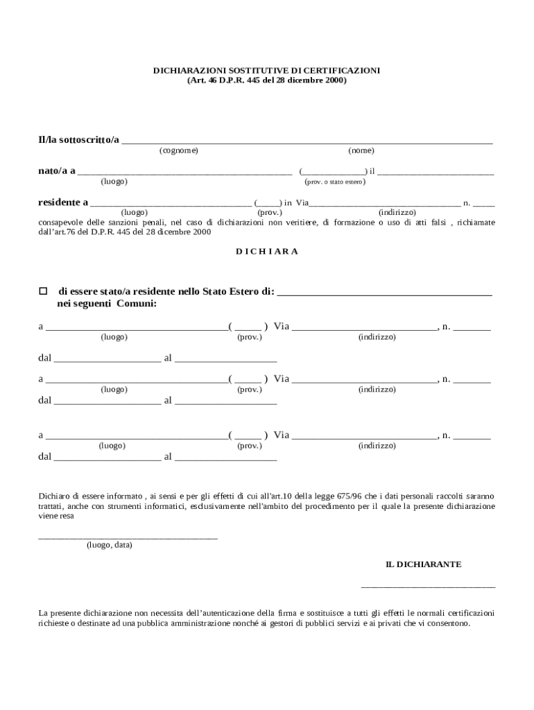 Ottieni il gratuito Italian Residency Declaration Form