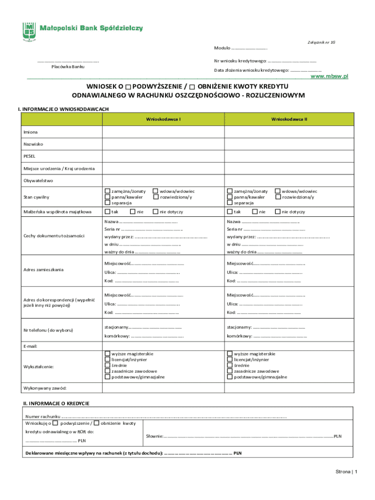 Individuals residing in Poland who are seeking to modify their existing credit lines are eligible. Both Applicant I and Applicant II must sign the form.