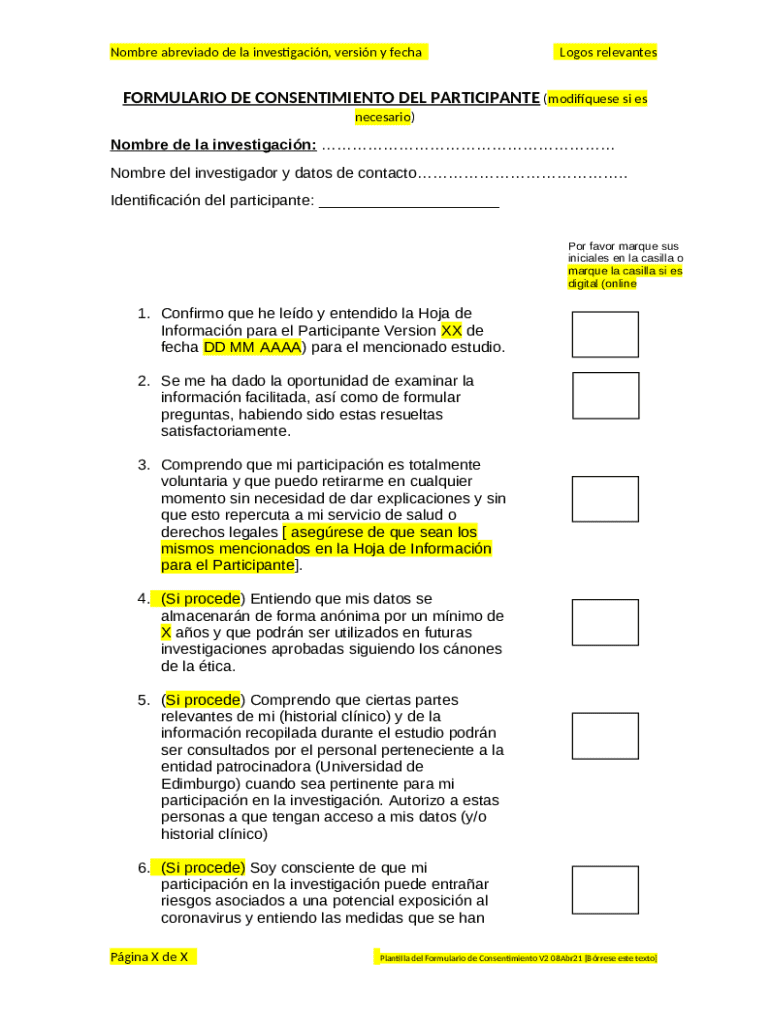 Obtén la gratuita Participant Consent Form