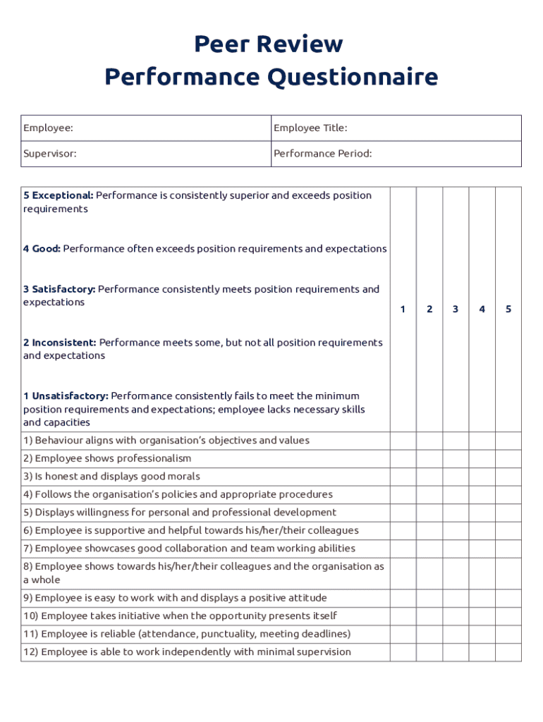 Comprehensive Guide to employee performance questionnaire