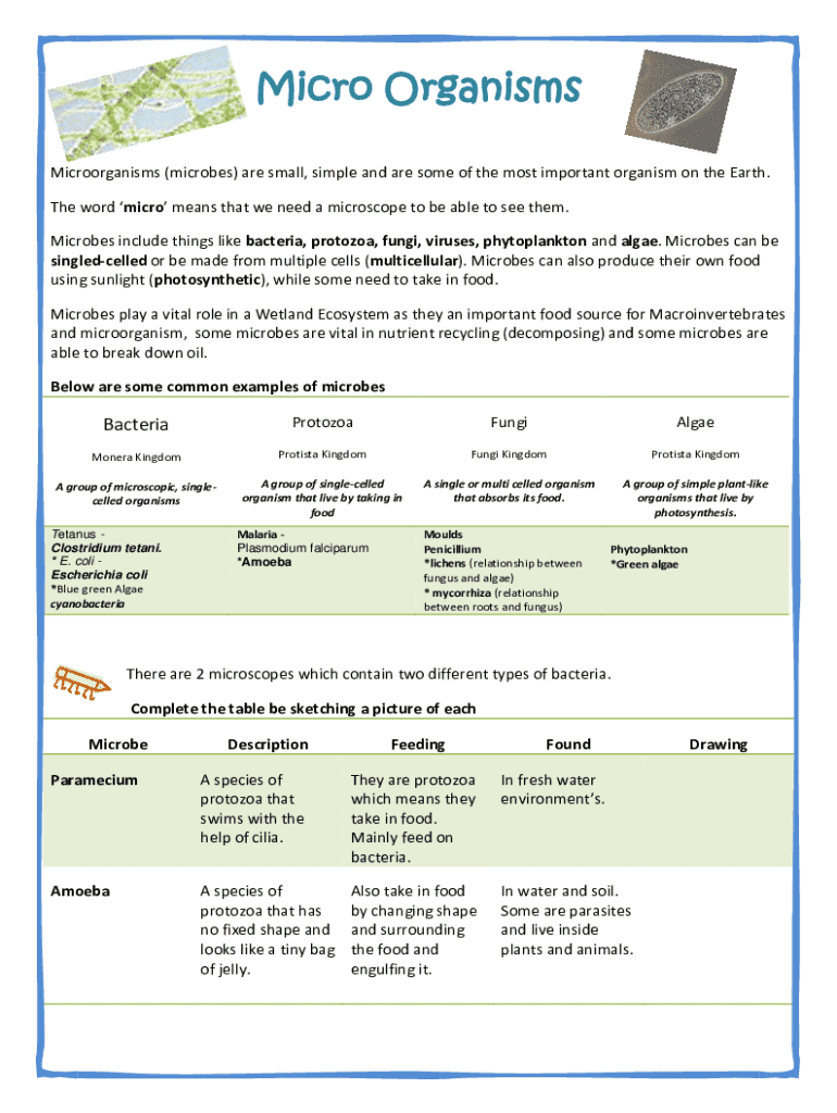 Get the free Microorganisms Study Guide