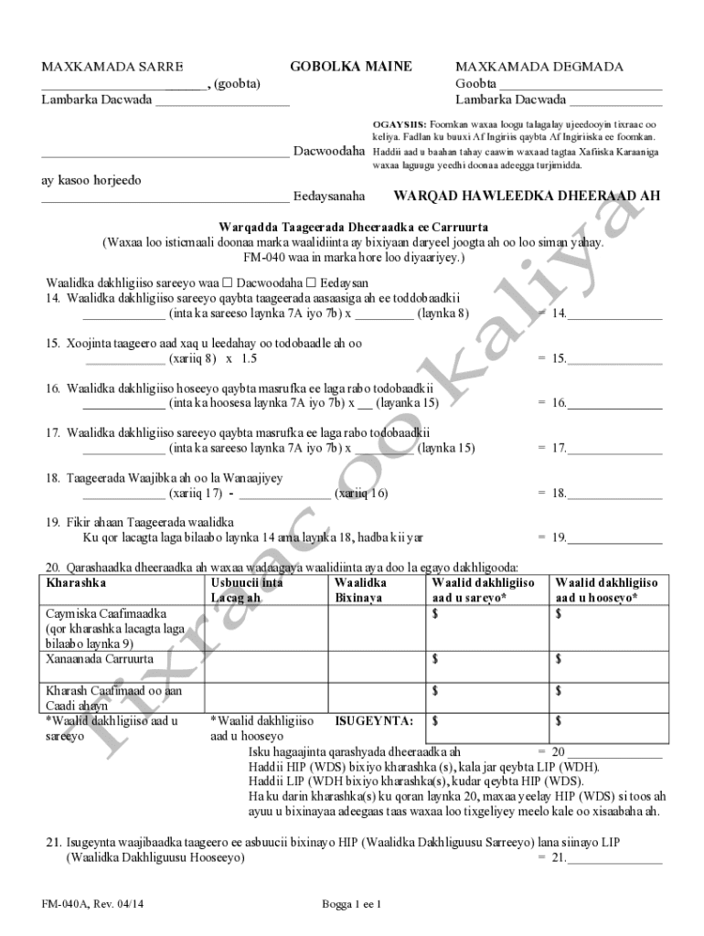 Key areas in the form include input fields related to income, allowable deductions, and other pertinent expenses that will significantly affect the final support amount.