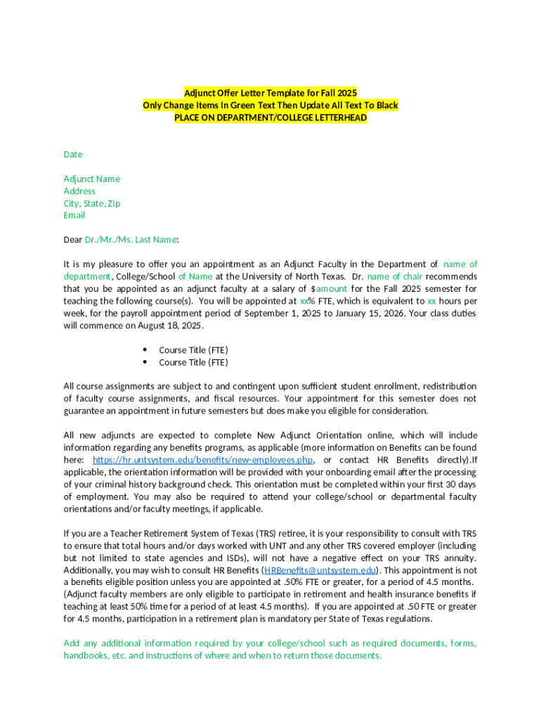 How to Fill Out the Adjunct Offer Letter Template Online