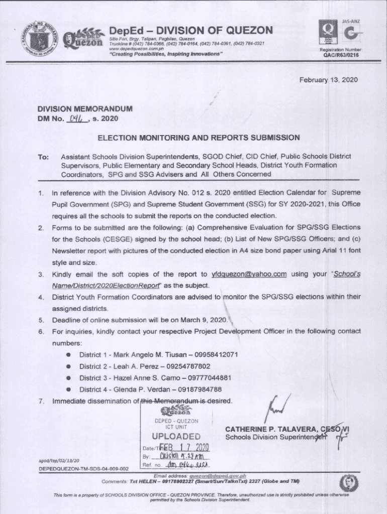 The Election Monitoring and Reports Submission form is a crucial document used by schools in Quezon, Philippines, to report on the elections for the Supreme Pupil Government (SPG) and Supreme Student Government (SSG).