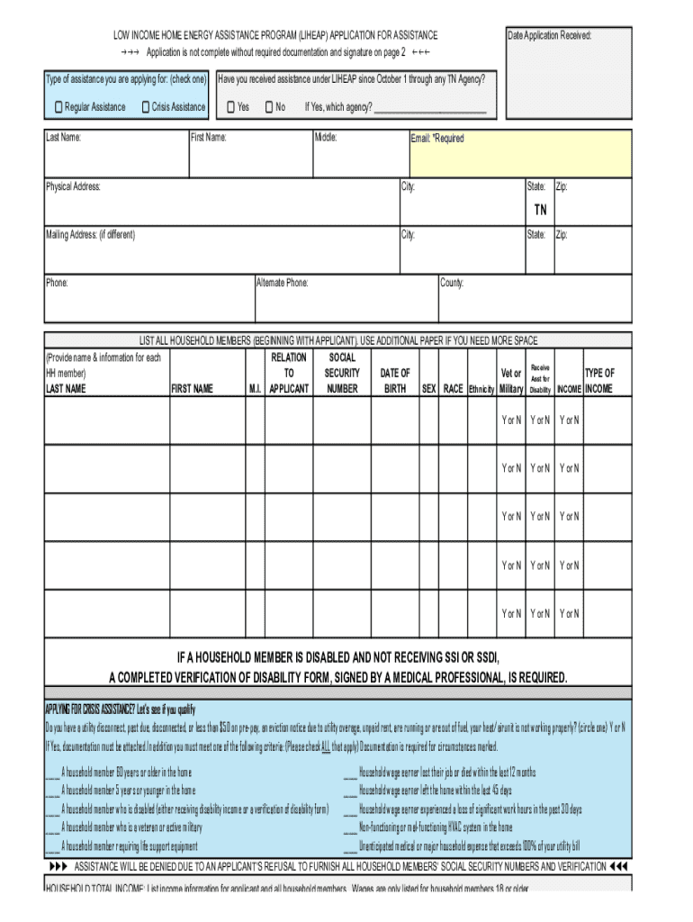 The LIHEAP Application for Assistance is a government form used by Tennessee residents to apply for energy assistance benefits.